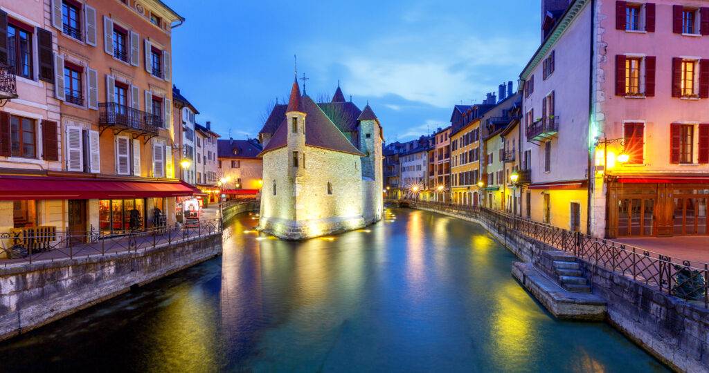Medieval buildings line the Thiou River, painted in shades that reflect in water so clear you can see the stones below. The Palais de l’Isle, a 12th-century fortress, sits on an island in the middle of the canal like a stone ship that’s been moored there for 800 years.