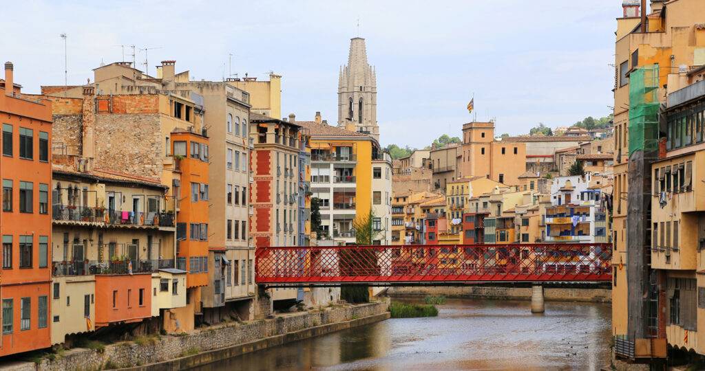 Girona sits 40 minutes north by train, which means you can land at Barcelona’s airport and simply skip the Catalonian capital’s bustle entirely. The Onyar River cuts through the centre, lined with painted houses in ochre, terracotta, and burnt orange that photographers love.
