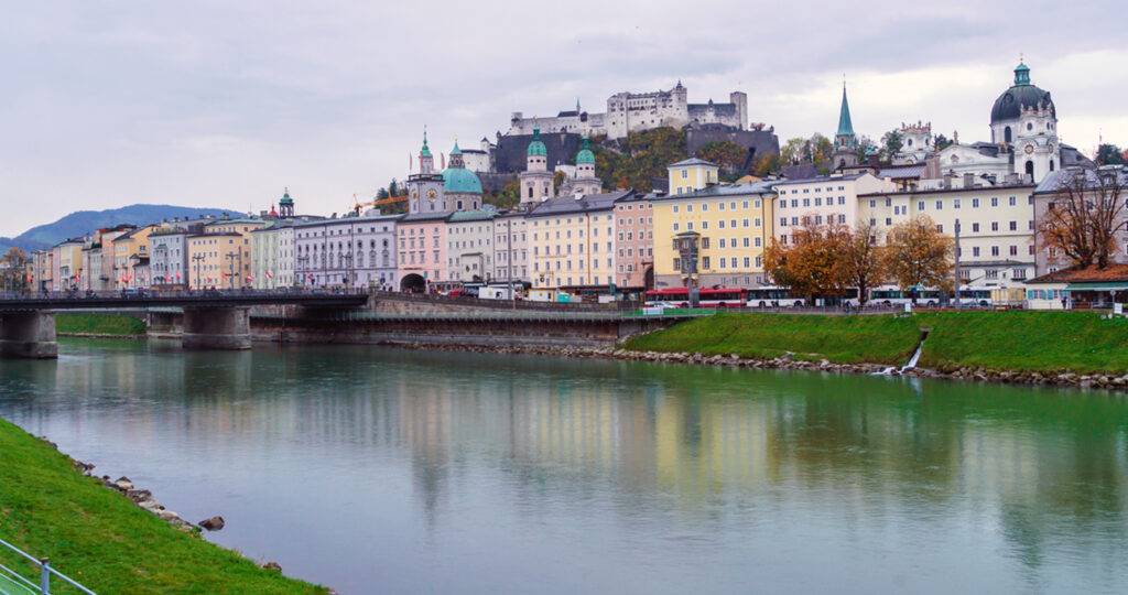 Salzburg sits where the Salzach River cuts through the Alps, dominated by Hohensalzburg Fortress on the hill above. Mozart was born here in 1756, and the city hasn’t let anyone forget that.